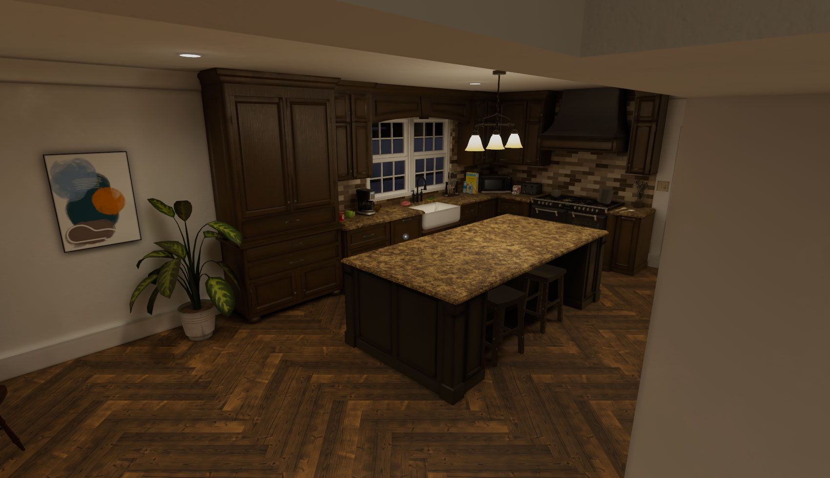 Простор для большой компании: В доме расположены 6 спален и 4 с половиной ванные комнаты, что делает его одной из самых вместительных жилых локаций. Дизайн вдохновлен классическими особняками американских субурбий, сочетая в себе масштаб и домашний уют. В этом мире есть всё для комфортного времяпрепровождения: зеркала для примерки аватаров, видеоплееры для совместных просмотров и интерактивные объекты, которые можно брать в руки.